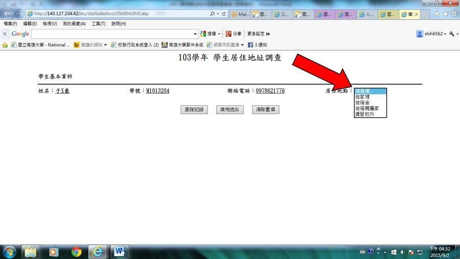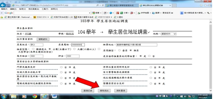5.填寫【學生居地址調查】-住家裡、宿舍、親屬家或賃居校外